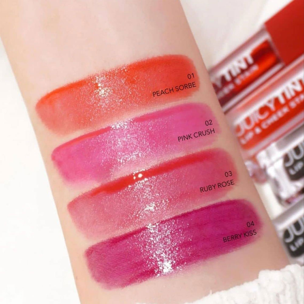 دارای 4 رنگ متنوع و جذاب زرشکی،قرمز،صورتی و بنفش میباشد. بعد از استفاده سریع خشک شده، حالت چسبناک ندارد و به هیچ وجه پخش نمیشود. ماندگاری این محصول بسیار عالی بوده، کاملا! Kissproof است و ساعتها روی لب باقی میماند. رنگهای این تینت بسیار جذاب بوده و برای یک آرایش کاملا نچرال و روزانه مناسب است.
